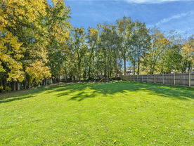 Off the kitchen is a formal dining room, and the spacious living room has a gas fireplace framed by built-in bookshelves.